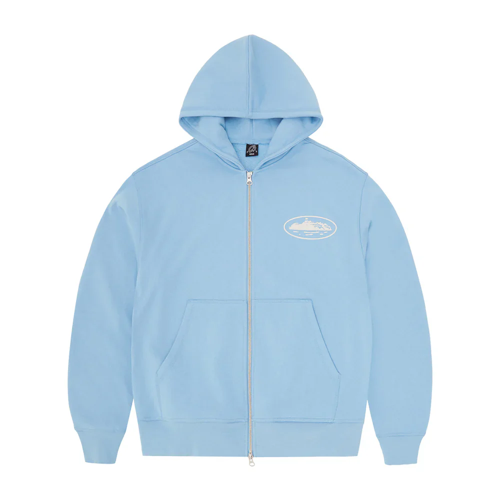 Corteiz Island Puff Print Zip Hoodie ‘Baby Blue’