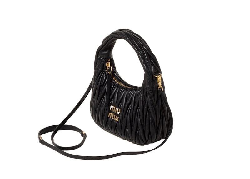 Miu Miu Wander Matelasse Nappa Leather Mini Hobo Bag BlackMiu Miu Wander Matelasse Nappa Leather Mini Hobo Bag Black